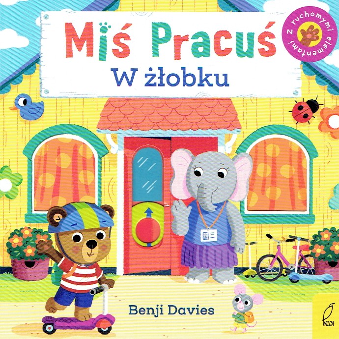Miś Pracuś, Pracuś Miś nowe zadanie będzie miał dziś! Przesuń ruchome elementy, odkryj kryjące się w książce niespodzianki i sprawdź, co ciekawego może go spotkać w żłobku. [Opis z okładki]